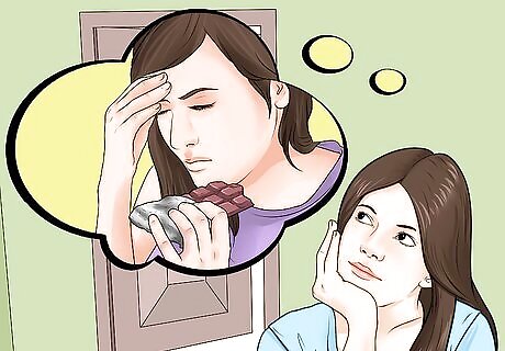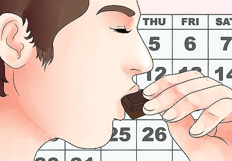 Recognize and avoid your triggers. You should take the time to recognize any triggers that lead you to reach for a chocolate bar. This could be situations where you are feeling stressed at work or overwhelmed at school. You may also find you indulge on chocolate when you are feeling bored or restless at home. You should recognize what triggers your chocolate consumption and then work to avoid these triggers. For example, if you find you end up reaching for chocolate when you are bored at home, you may try to counteract this trigger by doing something else. You may go for a walk or visit with a friend rather than sit at home and eat too much chocolate. This way, you acknowledge your trigger and then do not give into it. You may also notice that you crave chocolate during your period every month and tend to overindulge. You may prepare for this once a month trigger by opting for healthy snacks that still incorporate chocolate into your diet or by limiting yourself to only one chocolate a day.