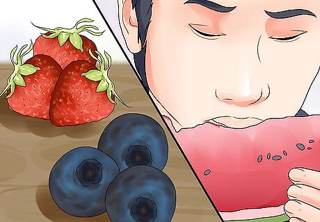 Have foods with natural sugars. If you are craving a sugar fix, you may opt for foods with natural sugars instead of chocolate. You may have fresh fruit, such as mangos, strawberries, blueberries, kiwis, pears, apples, or pineapple. Cut up fresh fruit and carry it in your bag as a snack for when you feel a chocolate craving coming on. You can also leave fresh fruit cut up in a bowl in your home so you can reach for it easily. This may help you replace your chocolate bars with fruit, a much healthier option that still contains sugar.