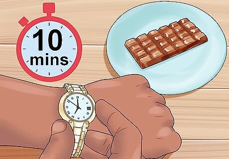 Wait 10 minutes to act on a craving. If you feel a sudden craving coming on for chocolate, you can keep it in check by waiting 10 minutes to act on it. If after 10 minutes you still want chocolate, you can allow yourself to have a very small amount. Often, waiting 10 minutes will allow your body to calm down and really consider if it needs chocolate. Waiting 10 minutes after a craving may also help you feel more in control of your cravings and not so powerless to resist overindulging in chocolate. Having a sense of control over your addiction can make it easier to cut back and limit your consumption of chocolate.