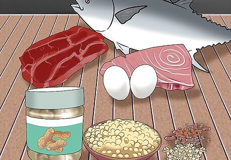 Help yourself to more protein. To help block insulin and to keep your weight on track, eat more meat and legumes. Healthy sources of protein are a good choice when you need a snack, and you should consume protein at every meal. Just don't go overboard! Prioritize protein. Eating protein-filled food helps fill us up and provides energy. Eating items like peanut butter and other nuts, fish, chicken, pork, red meat, eggs, beans (black beans, lentils, lima beans, etc), and soy counteracts insulin produced by eating other food. Sustaining a more protein-based diet can help you maintain a healthier weight. Consider portion size. After you change your diet, you still have to be aware of how much you eat. Clearly, savoring a 16-ounce steak or three servings of fried fish during Friday dinners won’t help you keep your weight down. It is better to eat smaller portions throughout the day. Read the labels. Sometimes, it might seem like our food choices are healthy, but they aren't. Be aware of how much sodium and sugar are in the food that you eat. Use a fit bit or buy a calorie counter to help you in this endeavor.