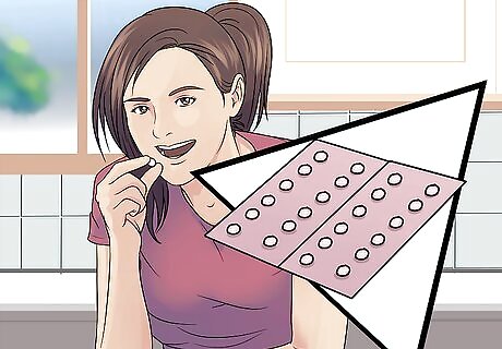 Take birth control pills or progesterone to manage your period. When your period interferes with your daily life, take action. One common method is to use birth control pills. The different dosages of hormones that they contain can help balance out problems with your hormones. Using progesterone is an alternative that will give similar results for those who do not like birth control pills. Remember to take your birth control pills every day at the same time. If you accidentally skip a dose, do what the directions say. Administer progesterone as directed by your doctor. You will usually take it for only ten to fourteen days per month. Ask to try a different length of time if it doesn’t seem to work. Be patient when starting these treatments. It will take several months to figure out if they will have positive effects. If you experience severe effects listed as possibilities in the informational brochure, contact your doctor immediately.