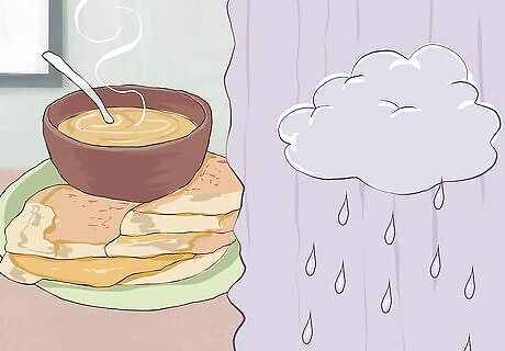 Check the weather to determine what nights you might want hot or cold foods. It is no secret that our food preferences change depending on the weather. So, if there is a cold rainy night coming up, prepare for grilled cheese and soups. If a heat wave is coming, look for meals that don't require tons of time over a hot oven or stove, like fresh salads or sandwiches. Ina Garten Ina Garten, Television Personality & Cook Look to the current season for inspiration. "In the summer you want fresh, light and sort of quick things; in winter you want things that are comforting, so your body really tells you you want to go towards potatoes, apples, fennel, things that are warm and comforting."