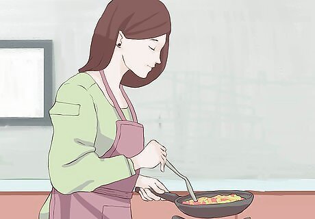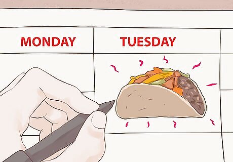 Be flexible every now and then. No one can plan for everything, and that's fine. Sometimes you may want some spontaneity, and some days you'll get home and just won't feel like cooking. A meal plan is there to make life easier, not bind you to some sort of eating contract. Try having a "cook's choice" night, which you leave open to figure out later that day. This is often a good choice for your shopping day, as you can easily buy the right ingredients for that night's meal on the fly. While meal plans are a good way to limit costly eating out, you should still free to head out every once and a while.