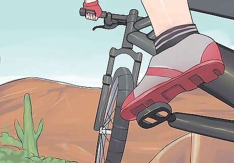 Buy a mountain bike to ride hard over a variety of terrain, not ride quickly. Mountain bikes are made to take a beating and survive. Even city or small-town dwellers like them, as they can turn off on dirt paths, crush over curbs, and get a little muddy without worrying about the bike breaking down. That said, a mountain bike's true purpose is to safely bomb up and down trails covered in roots, rocks, and sticks, and they will handle it accordingly. Trail Bikes are great, all-purpose mountain bikes that can handle light and difficult trails as well as pavement and dirt roads quickly. All Mountain Bikes are made for hard, technical trails and serious riders. If you plan on hitting the trials, spending a little extra money will almost always be worth it for safety and comfort.