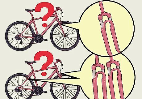Decide if you want double or single suspension. All mountain bikes have shock absorbers on the front wheels, allowing you to get over obstacle easily and maneuver in tricky terrain. However, serious bikers need to consider double suspension: Hardtail: Another name for single suspension, these bikes only have shocks on the front wheel. They are lighter and cheaper options, and transition better to pavement riding. Full-Suspension: Made for technical, tricky trails, these bikes are heavier but far more maneuverable and useful for serious mountain bikers.