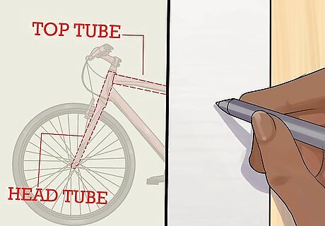 Know how to measure a bike's frame size. The main factor in buying the right bike is the frame size. The frame is the metal body of the bike, and it is measured in three key places. While most bike frames utilize only one measurement for sizing, knowing how to locate all three is key to getting the right size bike. Seat Tube: This is the vertical bar between your seat and the pedals. It is measured to the center of the crankshaft, which is the circular disk that your pedals attach to. Top Tube: This is the horizontal bar between your seat and the handlebars. It affects your "reach" towards the handlebars. Head Tube: This is the small vertical area on the front of your bike, measured between from where it begins to fork around your front wheel and the handlebar stem. It also affects your "reach" to the handlebars.