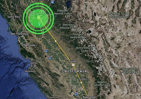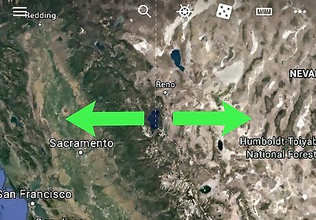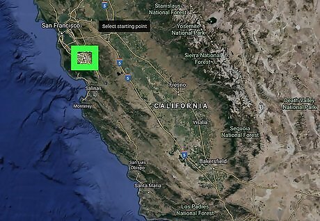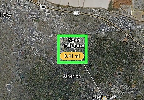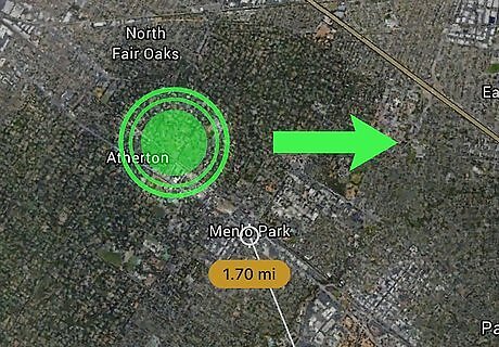 Move the map center to a different location. Hold down and drag the map on your screen to change your location. You will see the location's distance to the starting point on a pop-up label below the center point. This distance will change as you move.