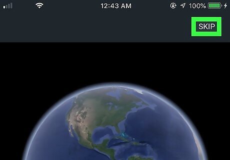 Tap the SKIP button. You'll see a tutorial page when you open the Earth app for the first time. Click this button on the top-right to skip the page.