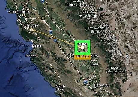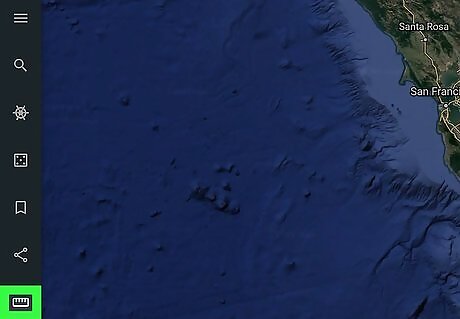 Click the white ruler icon. This button is on a sidebar on the left-hand side of the page. It will allow you to measure any distance on the Earth map.