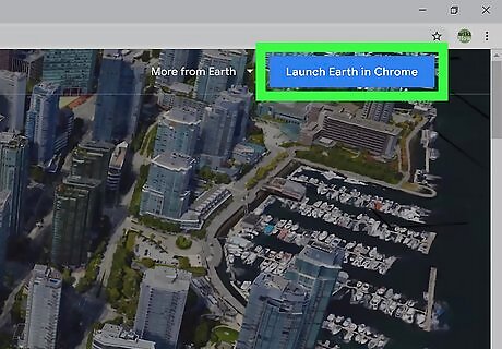 Click the Launch Earth in Chrome button. You can click this button on the top-right or the bottom-left corner of the page. If you're using a different browser, you can click the Learn more button on the bottom-left, and download the desktop app. If you're using Google Earth for the first time, it'll open up to the tutorial screen. Click the SKIP button or the "X" icon on the top-right to skip it.