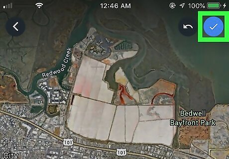 Tap the white-on-blue checkmark button on the top-right. This button is in the upper-right corner of your screen. It will finalize your route, and measure the distance. The distance is shown on a white panel at the bottom of your screen.