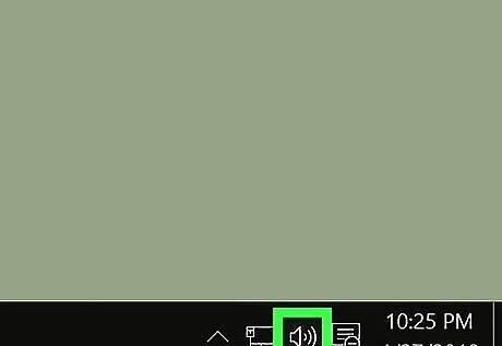 Find the sound icon on your desktop taskbar. This button looks like a speaker icon in the lower-right corner of your desktop next to the Wi-Fi and battery icons.