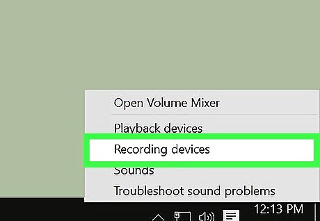 Click Recording Devices on the right-click menu. This will open your Sound settings in a new window, and switch you to the Recording tab. You can see a list of all your audio input devices here.