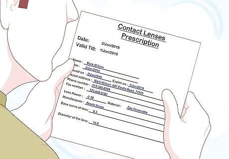 Get a copy of your contact lens prescription. Your doctor will provide you with a paper copy of your prescription and they may give you a digital one as well. Be aware that a doctor can’t require that you buy contacts from them directly in exchange for a prescription. After you’ve received your contacts, you can find your prescription information by looking on the side of each contact box. This can really come in handy if you accidentally lose your paper prescription.