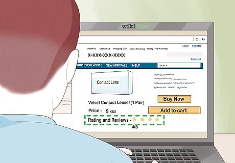 Buy online if you want more choices. If your contacts brand is hard to find or if you have an unusual prescription, then online ordering might be a good option. You can usually search around and find a website that is willing to offer a competitive price, especially if you buy in bulk. However, make sure that you only buy from a reputable site that sells quality goods. To check on a site, make sure to read reviews and to pay attention to any comments on government sites or the Better Business Bureau.