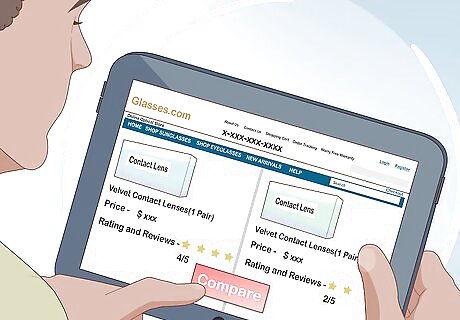 Perform a price comparison. Determine how much each individual box of contacts will cost you, including any shipping or ordering fees. Experiment with ordering different amounts, such as a 4 months’ or even a year’s supply, to see if this cuts down on costs. And, don’t forget to add in any potential rebates.