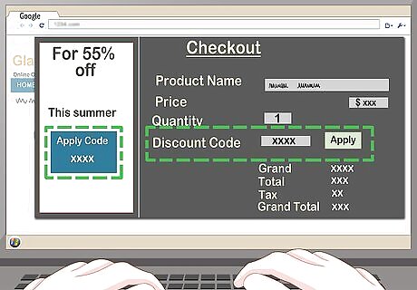 Apply any rebates. Look for rebates from the contacts manufacturer, the seller, or even your optometrist. Some rebate programs target particular groups, such as first-time contact purchasers. You can even check with your government to see if they have programs to encourage regular eye exams and connected contact purchases. Be aware that you’ll usually need to mail in a proof of purchase, such as the contact box barcode, in order to claim a rebate. Then, you’ll have to wait 2-4 weeks for a check to be returned to you.