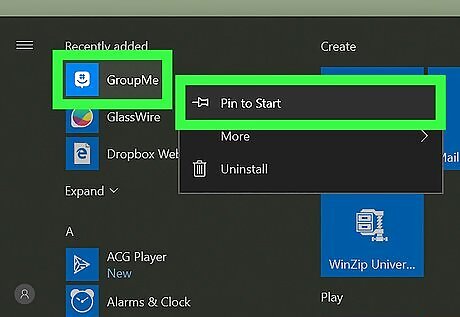 Add a new tile to the Start menu. You can create tiles for any app on your computer. Here’s how: Right-click an app you want to pin. Click Pin to Start. A new tile will appear for the app you’ve added.