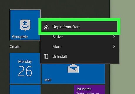 Remove tiles you don’t need. Here’s how: Right-click the tile. Click Unpin from Start.