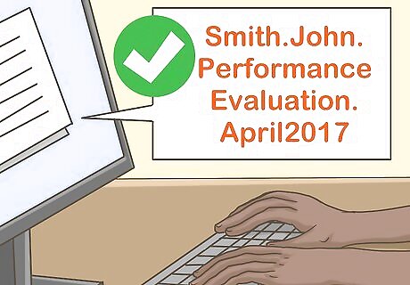 Label file folders carefully. When organizing electronic personnel files, it’s crucial that you label files correctly and clearly. Anyone who accesses the files should be able to understand the label that you assign the file. Make sure to label employee names consistently: “Last name, First name.” An example of a clearly labeled document could be “Smith.John.PerformanceEvaluation.April2017.” This file name tells you the employee’s name, the type of document, and the date. An example of an unclearly labeled document could be “SmithEvaluationApril.” This file name tells you the employee’s last name, but this could be confusing if there is more than one employee with the last name “Smith.” It also doesn’t clearly indicate what type of evaluation or the year, only the month. This will help prevent files from being lost or misplaced, and allow people to find them easily when necessary.