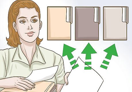 Organize files according to document type. This type of organizational system is best for people who tend to look at the bigger picture more, though personal preference is the main determining factor. For this type of organization, you’ll need to group files by document type, keeping all similar files together for every employee. For example, you could have one file that contains all of the employee drug tests, another one for all employee performance evaluations, and yet another for necessary medical records. Within each document type grouping, you should organize the files alphabetically to make it easier to find each employee’s forms as needed.