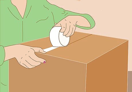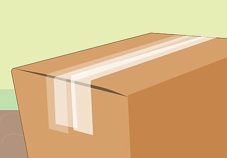 Secure the lid shut with heavy-duty packing tape. Press the right and left side flaps down. Place 3 strips horizontally across the lid, where the right and left sides meet.