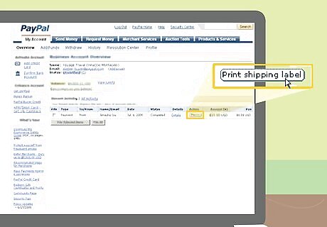 Locate the area where it states "transactions." Find the transaction you need to ship. Click on the "Print Shipping Label" option. It will ask you if you want to print a sample shipping label. Click "No."
