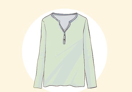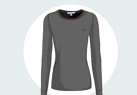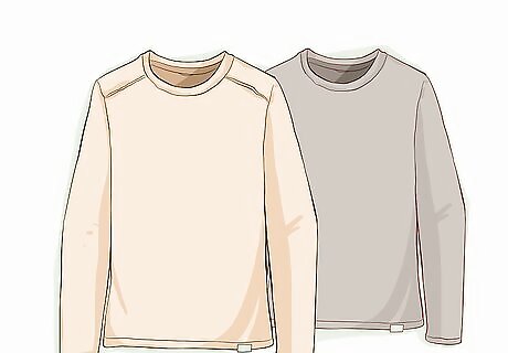 Select 2-3 versatile T-shirts for your top base layer. Choose 2-3 long-sleeved or short-sleeved T-shirts that you’ll be comfortable wearing as a base layer most days. Pick T-shirts that have neutral colors and not too much going on in the way of writing or other graphics so they will combine with multiple different outfits. You can wear each T-shirt at least twice before washing them, so 2-3 is enough to last you a week. You don’t need to wash clothes as often when the weather is cold since you won’t be sweating as much as you would in hot weather.