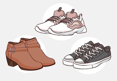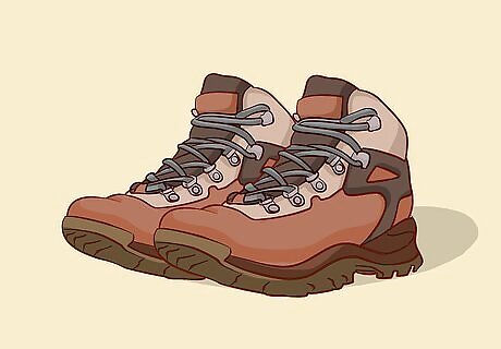 Take 1 pair of boots suited to the environment you’ll be in. Choose 1 pair of either hiking boots, insulated boots, or other comfortable boots based on the type of walking around you will be doing and what the terrain is like. Check the weather for your destination to see if there is rain or snow and think about whether you will be walking around mostly in paved environments or in nature. If you are going to be hiking, take a pair of hiking boots. If you are going to be somewhere with snow and mud, some rubber boots with insulation are ideal. If it’s cold outside but you’re just going to be walking around on city streets, and don’t anticipate any snow or mud, something like desert boots or Doc Martens will work.