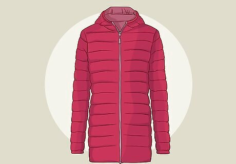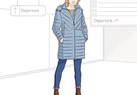 Choose 1 heavy winter coat to bring for a warm outer layer. Pick out your favorite heavy winter coat, such as a peacoat, down jacket, or parka. This won’t go in your carry on, so don’t worry about how big it is. Pick something that you will be comfortable and confident wearing on top of all the other clothes you are bringing. This is the warmest item you are bringing and the one you will probably wear the most, so make sure it’s a coat you love. You can wear it on top of just your base layer if it’s not freezing outside, or layer up and put it on top of everything if you’re in sub-zero temperatures. An alternative to a heavy winter coat is a packable down jacket. These types of down jackets can be packed into a pocket of the jacket, so you can fit it in your carry on, and are very warm despite how small they are. They are also easy to layer on top of or underneath other items.