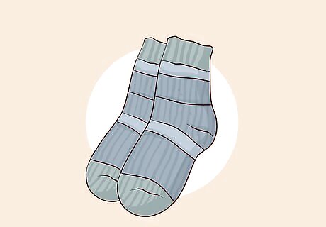 Choose 3-4 pairs of long, warm socks. Pick out 3-4 pairs of socks that reach at least up to your calves. Select the longest, thickest socks you have rather than thin dress socks or ankle socks. These don’t necessarily have to be winter socks like wool socks, but the thicker and longer they are, the more warmth and protection against the cold they will provide.