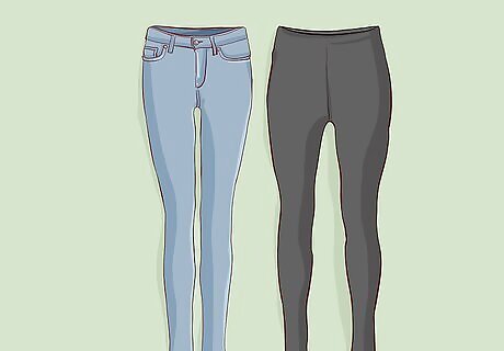 Pick 2 pairs of jeans or other pants for your bottoms. Take 2 pairs of jeans if jeans are your go-to pants. Take 1 pair of jeans and a pair of leggings or chinos if you want more variety.Tip: If you are going to be doing winter sports like skiing or snowboarding, you can rent clothing like ski pants for those activities. Don’t try to pack your own winter sports clothing in a carry on because it is extremely bulky. If you will be doing any special activities, such as hiking, you can take 1 pair of hiking pants as one of your 2 pairs of pants. If you are bringing a pair of chinos instead of jeans, choose a pair that is made from a thick fabric or corduroy. Thin chinos won’t keep you warm in cold weather.
