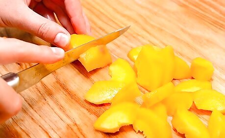 Process the peaches according to your recipe. Now they're ready to be sliced, diced, or pureed. The peeled peaches will be easy to pit, too. Here are a few delicious ways you can use up your peeled peaches: Peach cobbler. This classic summer dessert is wonderful hot out of the oven with a scoop of vanilla ice cream. Peach pie. If you're up for a challenge, this homemade dessert is sure to be a hit with your family and friends. Peach jam. Make jars of peach jam so you can enjoy the taste of summer during the months when peaches aren't in season. Peach chutney. This delicious condiment goes well with fish and pork. Peach salsa. Try something a little different next time you have a bag of tortilla chips to use up. Peach smoothie. This healthy drink is perfect for breakfast or a light dessert.