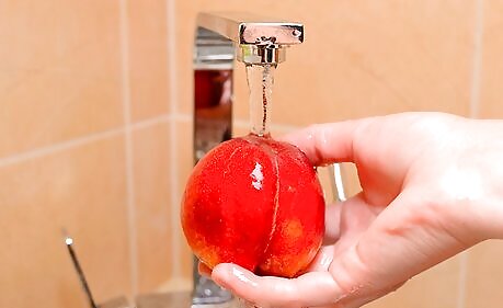 Rinse the peaches. Give the peaches a quick rinse under cool water before proceeding, especially if they have visible dirt or other debris. You don't want dirt (or bacteria) ending up in your finished dishes.