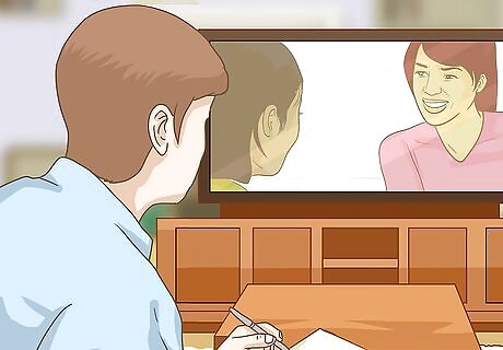 Watch television and movies in English. Listening to English with onscreen action can go a long way towards improving your language skills. Try to watch new shows and movies as well as movies that you know well. Doing this can help you pick up slang and improve your conversation skills. If you watch the same movie in English several times, you may be able to understand it without subtitles. Keep a list of unfamiliar words you encounter while watching in a notebook. Afterward, try to use the new words in sentences you write yourself. This will help you incorporate the words into your vocabulary.