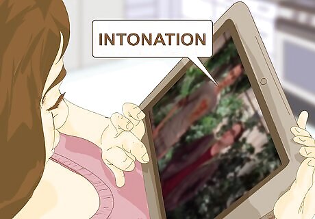 Practice intonation. Intonation helps listeners better comprehend your message and the emotion behind it. To work on your intonation, spend some time watching soap operas in English. Sure, they are corny, but their intonation is usually exaggerated for effect. Use that as a guide to understand when it is appropriate for your voice to go up in pitch or down based on the content of what you are saying. Pick a piece of dialog from a play, for example, and record yourself reading it with the proper intonation. Make recordings over time to see how your intonation has improved or changed with this same piece. By listening to the playback, you can get a better idea of where your voice is off or just right.