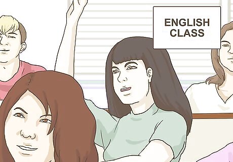 Take a class. A classroom setting allows you to brush up your language skills in areas of confidence and improve your skills where you lag. You may feel at ease practicing in front of others who fall a little short of fluency as well. ESLdirectory.com provides a great database to browse ESL classes in your area.