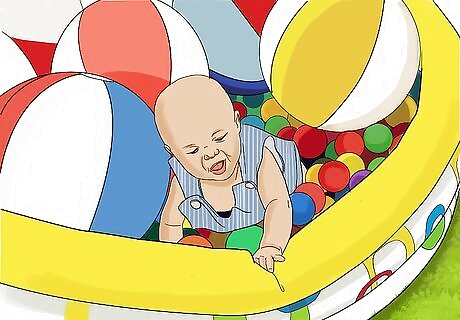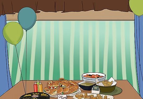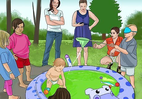 Plan additional games and activities based on your guest list. Your soon-to-be 1 year-old doesn’t really understand yet how to interact with other babies, so don’t plan games or group activities that would be only be suitable for older kids. Also consider your guest list. If you’re having a lot of somewhat older kids, consider a separate activity space for them with art projects, books and suitable toys. You may also want to have activities for adults too. Lawn games like corn hole or T-ball are great, or you can set up activities for adults to do with their kids, like arts and crafts.
