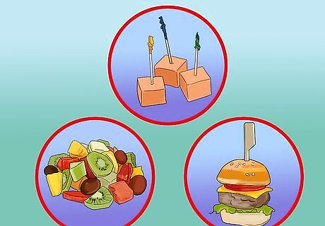 Serve finger foods. Your child, and many of the guests, won’t know how to use a fork or hold a plate. Consider easy to eat, one- or two-bite foods. Cheese cubes Individual sweets Mini sandwiches Fruit pieces Pizza, although it’s a little difficult for toddlers to eat without some help