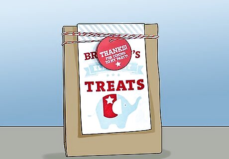 Give everyone a party favor. Small bags of candy are a great way to say “thanks” for making your baby’s day a special one. You can customize them based on age. For example, you can put dark chocolates or something more even more elegant in the adult favors, while kids will be perfectly content with milk chocolate and sugary sweets. It’s always best to avoid giving sweets to babies, so substitute a small, cuddly toy for your tiniest guests.