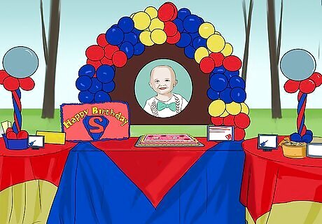 Pick a theme. The guest of honor won’t care one way or another, but your older guests might enjoy a colorful, creative theme party. Plus, your keepsake photos will be a lot more fun if they include decorations, hats and colorful food. Some ideas to consider: Cartoon or superhero themes Color themes Animal themes A circus theme