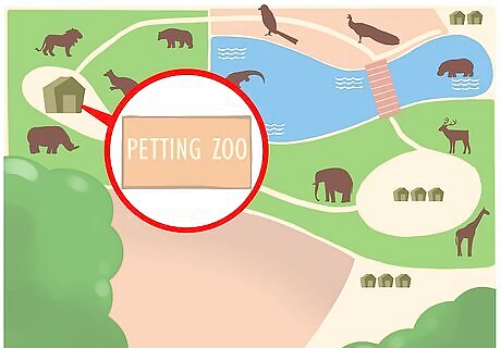 Locate the petting zoo. If your children are hands-on, be sure to include a stop to the petting zoo on your route. Most zoos have a small area dedicated for this. Looking at animals all day that they can’t touch can be unbearable for some kids, so this can provide much needed some relief.