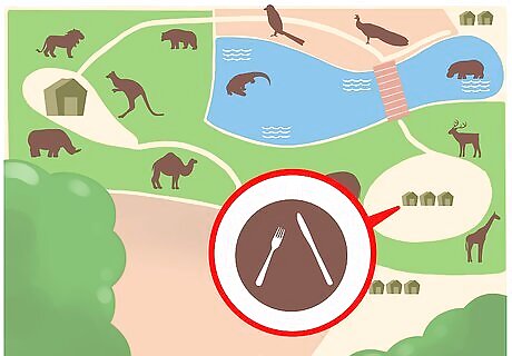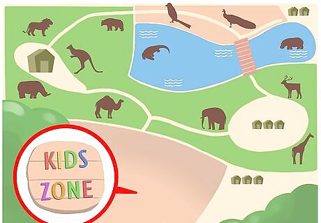 Locate play zones. Most zoos have play zones for kids. Mark these on your map to let the kids blow off some steam.