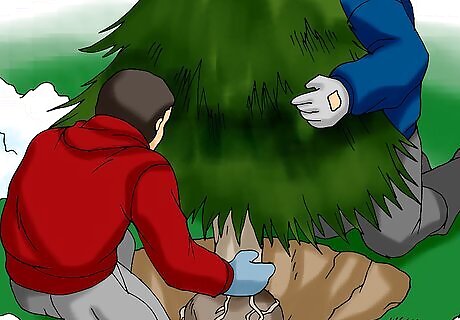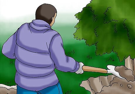Dig the hole as early as possible in the season. In colder climates, the ground will freeze if you wait until Christmas to dig the hole, so plan ahead and do this in the fall. If you’ve waited too long to dig and the ground is already frozen, try pouring boiling water onto the spot and then digging.