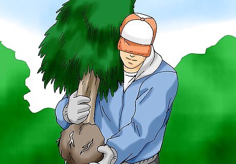 Remove root ball coverings. The root ball of your tree may have been wrapped in burlap or plastic, so be sure nothing remains wrapped around it when you’re ready to plant.