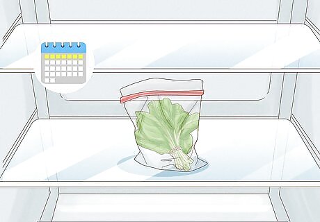 Store your harvested spinach in the refrigerator. If you're not using your spinach right away, store your unwashed leaves in a plastic bag for 5 to 7 days. If you store spinach in your freezer at 0 °C (32 °F), it can last for 10 to 12 months.