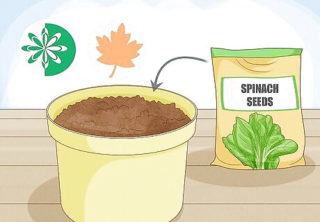 Loosen your soil prior to planting your spinach seeds. Use a small gardening shovel to dig into your soil about 8 to 10 inches (20 to 25 cm) prior to sowing your seeds. Fill it with potting mix and organic amendments such as yard trimmings, manures, and leaves from deciduous trees. This will create air pockets that facilitate air and water penetration.