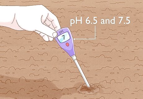 Test the pH of your soil. Spinach thrives in slightly alkaline soil with a pH between 6.5 and 7.5. If the acidity drops below 6.0, the spinach plant's leaves and stems may turn yellow. Add limestone to the soil to manually adjust pH levels. If your soil is low in magnesium, add dolomitic limestone to raise pH. If your soil is high in magnesium, add calcitic limestone to raise pH. You can also add finely crushed eggshells, ground oyster shell, or wood ashes to adjust pH.