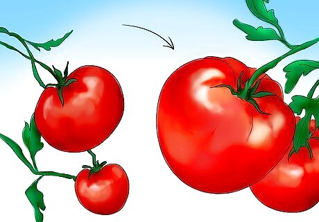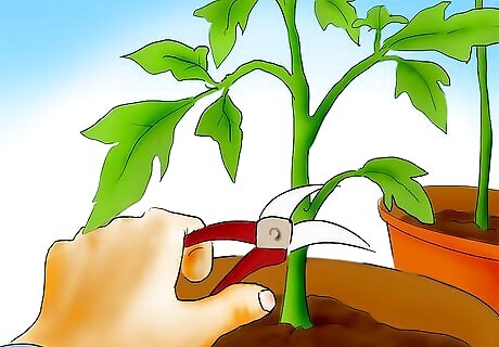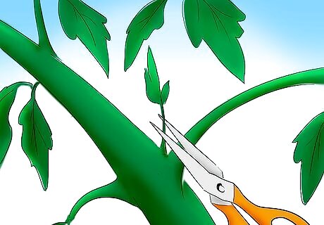 Maintain your tomato plants. As your plants grow, keep them healthy by pruning regularly and harvesting the fruit. Use pruning shears to cut off any suckers (small branches that come out of major branch intersections) and any branches that are hidden underneath and in near constant shade.
