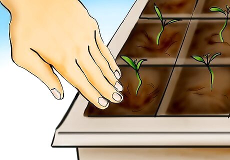 Give your seeds some heat. In order to germinate, the seeds need a source of light and heat. Place them in a large south facing window or use a heat or fluorescent lamp placed a few inches above them. The seeds will need at least 6-8 hours of light and warmth per day prior to sprouting. You can also place a heating mat under the tray to heat up your soil, which will increase the germination rate.